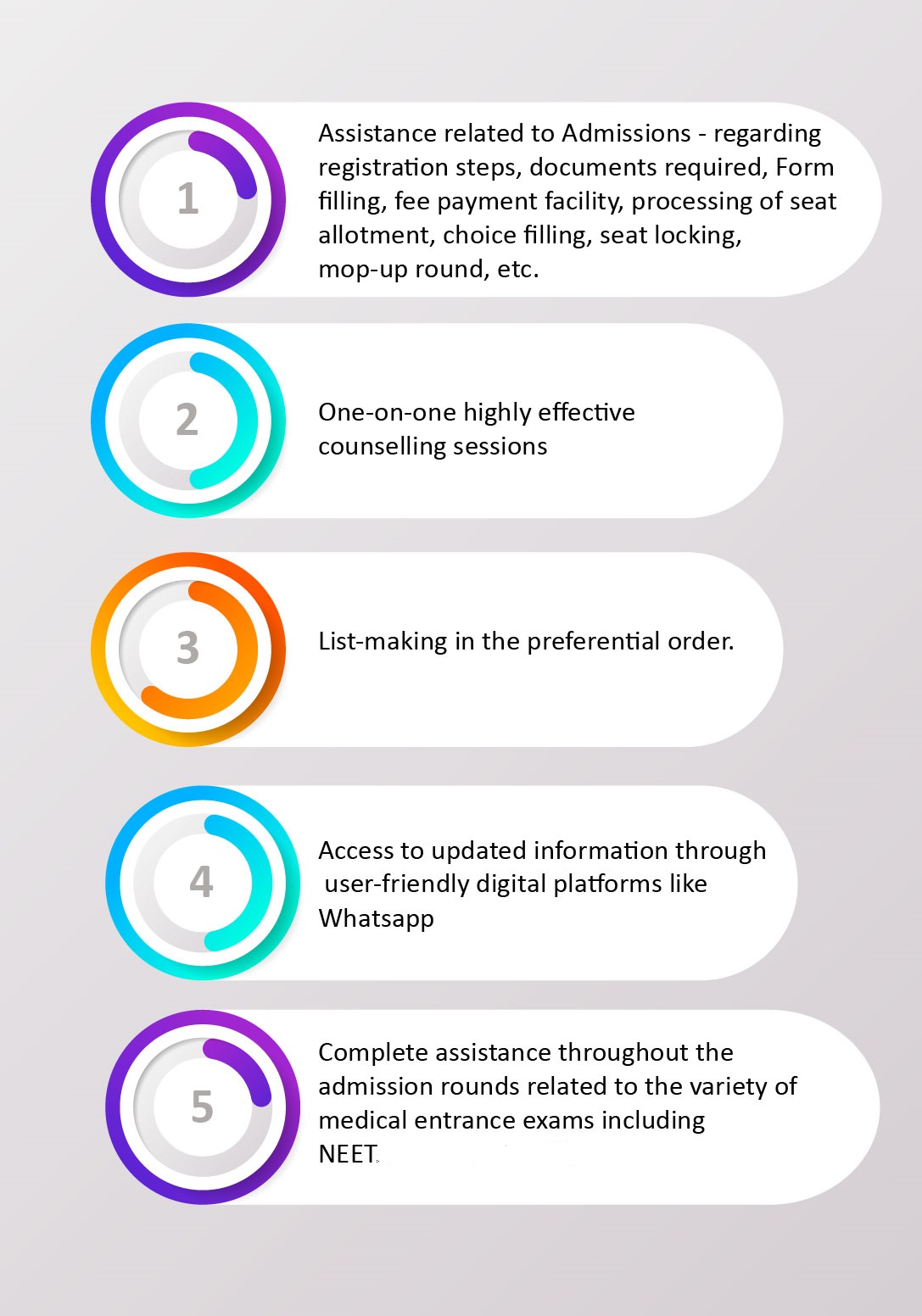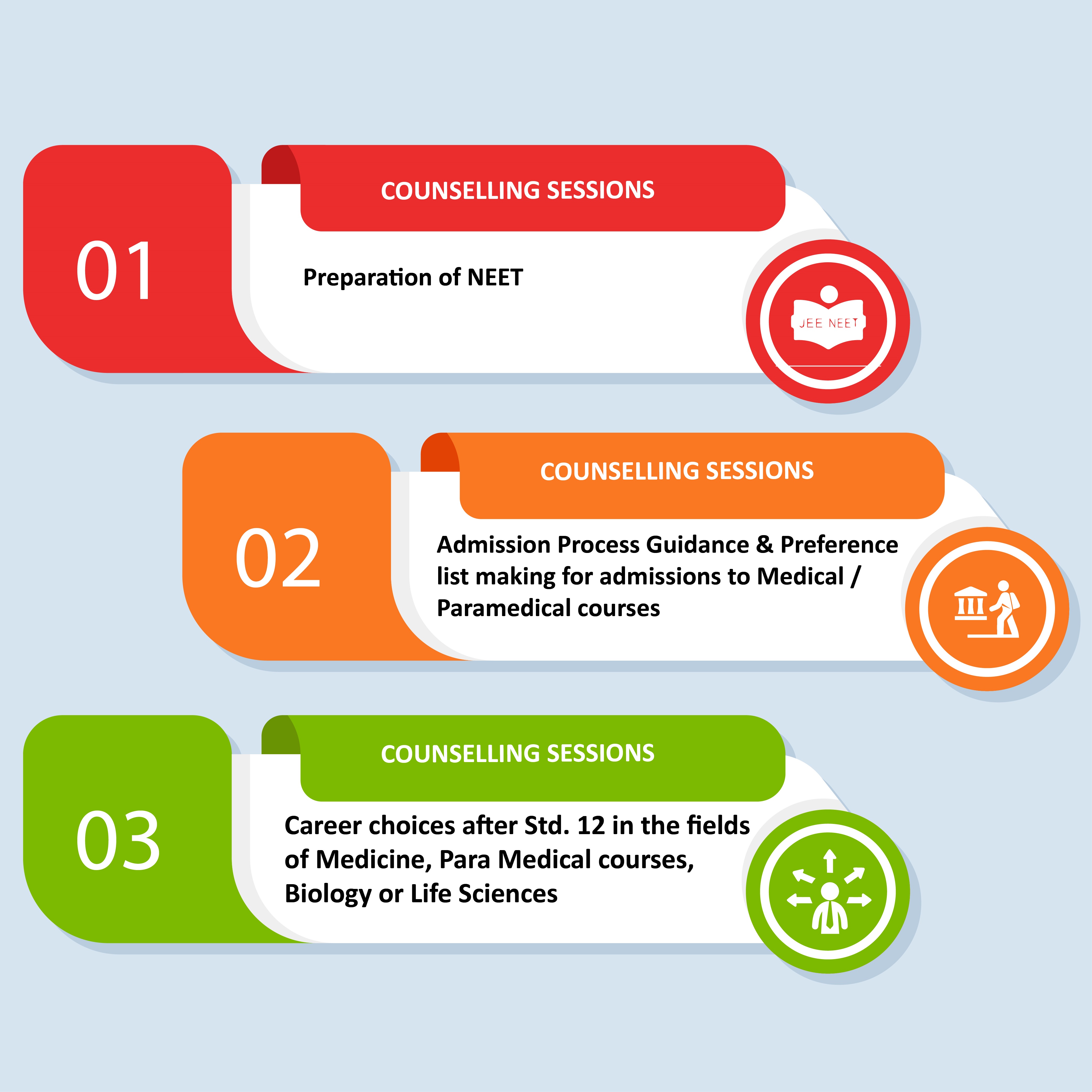 DRx MEDICUS understands that the requirement of coaching and skills differ from one student to another and hence offer a dynamic platform to cater to the diversified requirements of the students by One to One Counselling sessions.