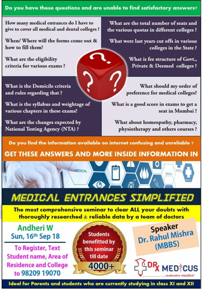 Parents and students attentively engaged in Medical Entrances Simplified Seminar at Andheri